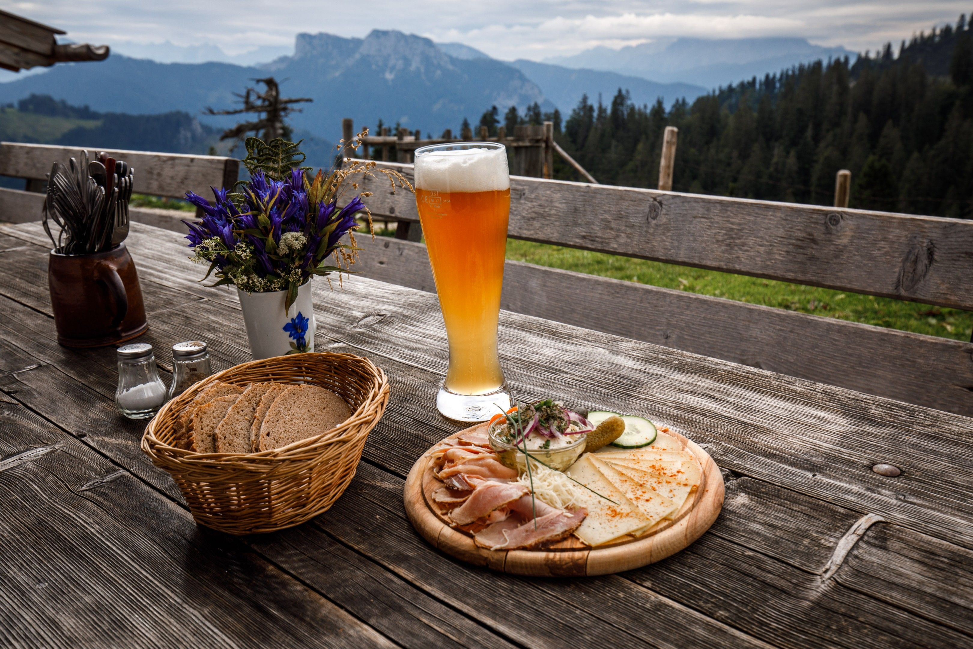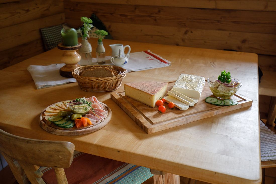 Etwas versteckt hinten am Waldrand in einem kleinen Hochtal zwischen Hochfelln und Hochgern liegt ein uriger, kleiner Kaser: Die Hinteralm (1.140 m).