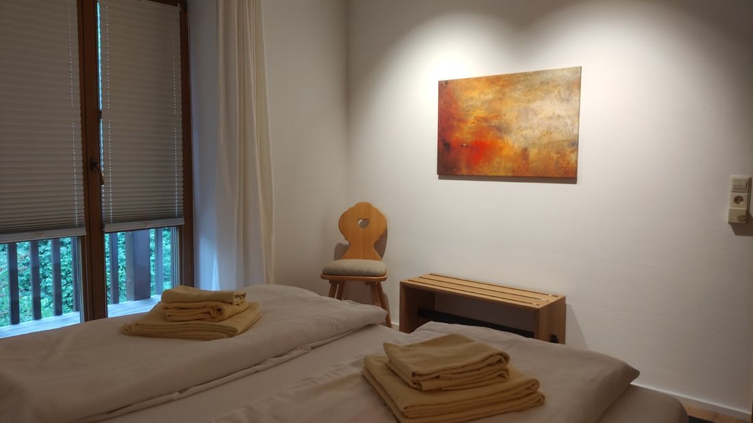 Schöne gepflegte, in 2023 neu Eingerichtete Nichtraucher-Wohnung in zentraler, ruhiger Lage nähe Kurpark. Ein separates Schlafzimmer mit Doppelbett und Ostbalkon, Bad mit Dusche und WC, Handtücher und Fön sind vorhanden, zusätzliches Gäste WC. Separate Küche mit Erker und Eckbank, ausgestattet u.a. mit Geschirrspülmaschine und Mikrowelle. Wohnzimmer mit ausziehbarer Couch (geeignet als Schlafcouch für dritte Person). Süd-Ost-Balkon mit Sitzmöglichkeit und freiem Blick auf die Ruhpoldinger Berge. Tiefgaragenstellplatz inklusive, keine Haustiere gestattet.