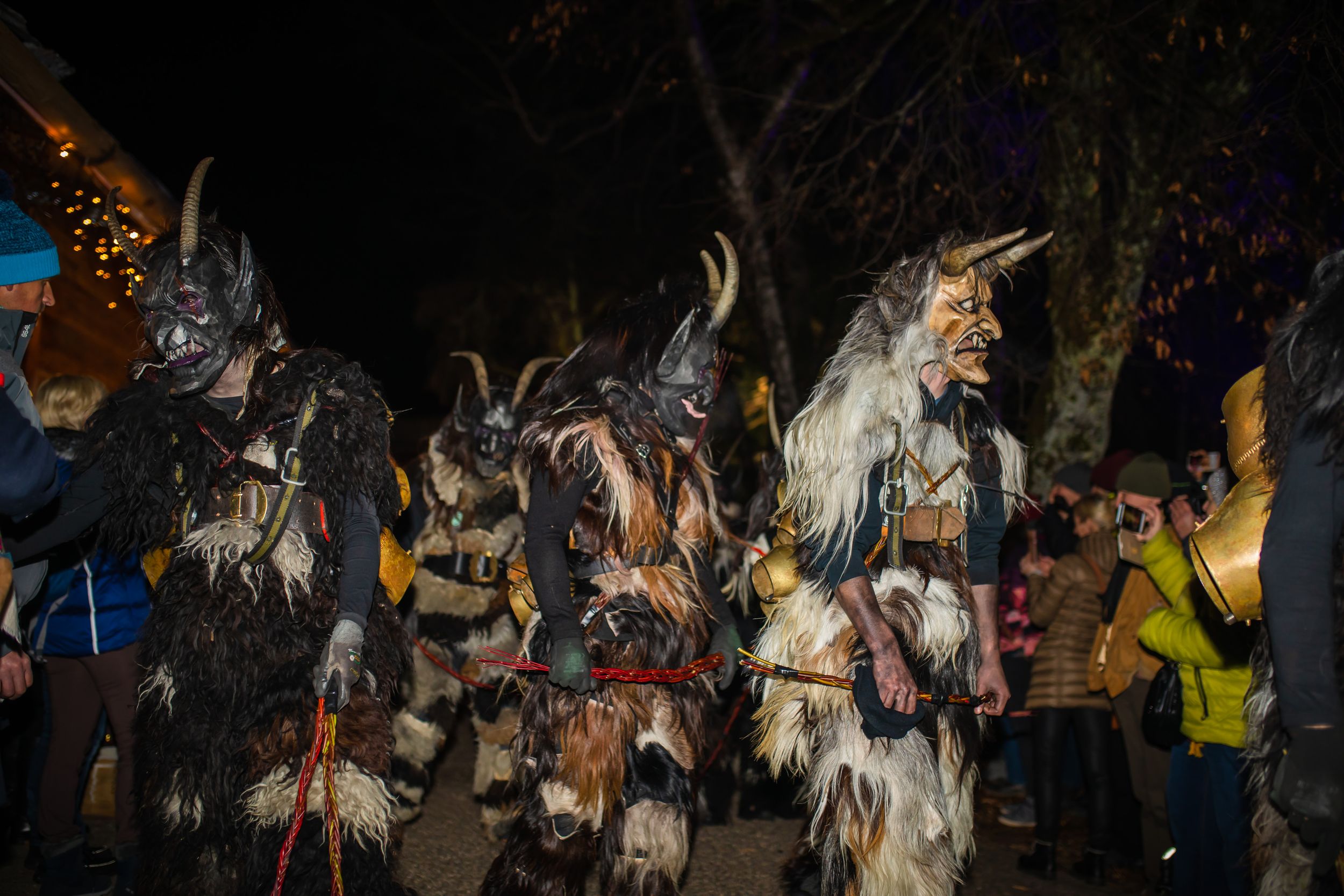 Perchten heißen auch die in Pelze und Felle vermummten, mit Schellen lärmenden und tanzenden Gestalten, die in den Rauhnächten ihr schauriges Unwesen treiben. Sie ziehen von Haus zu Haus und durch die Straßen der Orte und bringen den Menschen Glück fürs neue Jahr. Und sie flößen ihnen ordentlich Respekt ein - vor den geheimnisvollen Kräften, die die Kreisläufe des Lebens bestimmen. Perchtenläufe gibt es auch während des Ruhpoldinger Rauhnachtsmarkts. Und noch viel mehr.